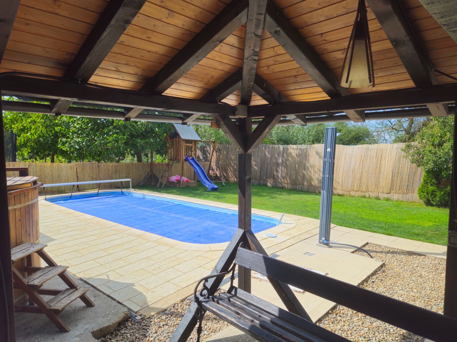 Piscină mare(8m X3m) cu apă încălzită la 31 de grade și duș solar(funcțională în perioada aprilie-noiembrie)